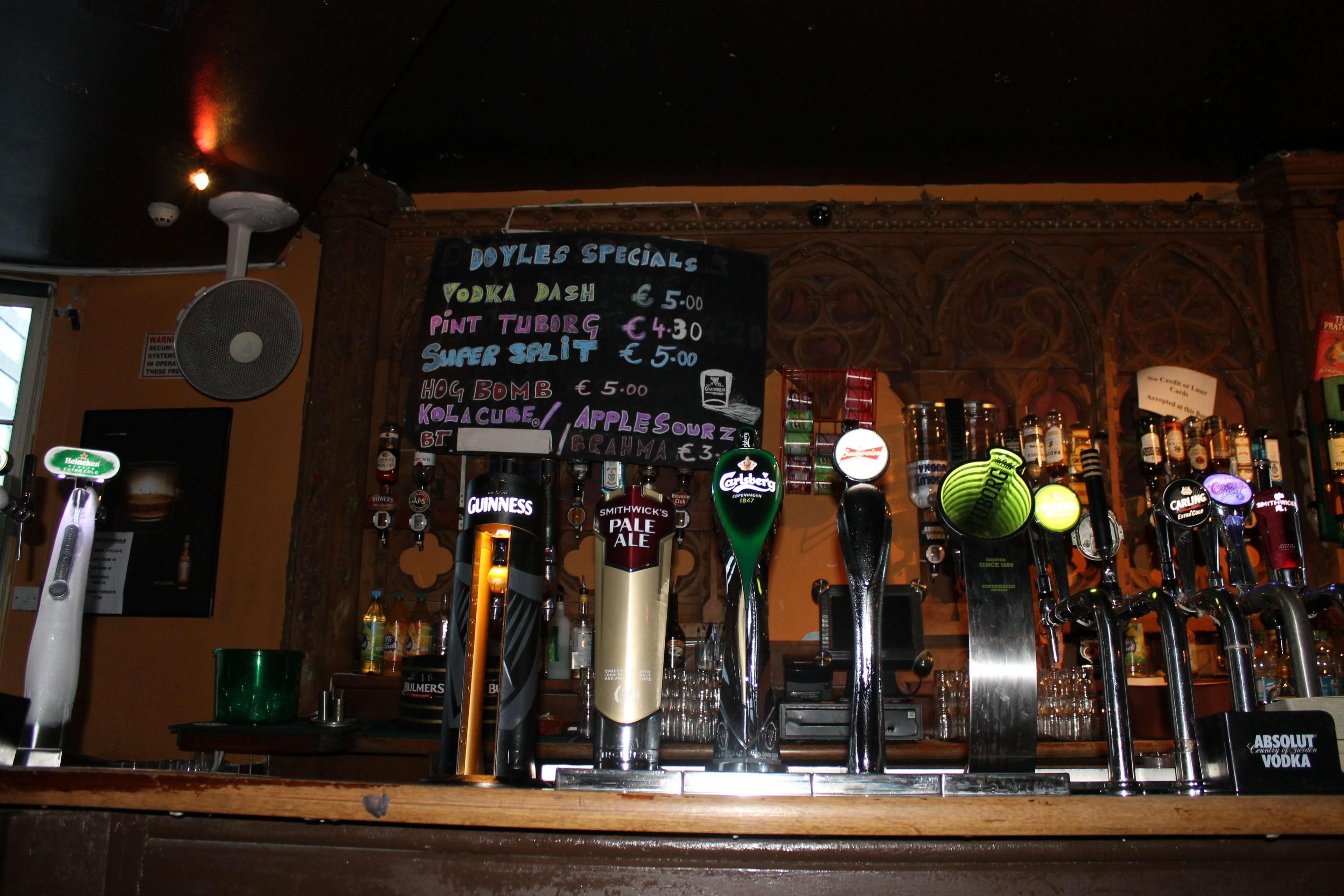 Tucked away on Fleet Street side of Doyles is Bowes, one of those rare establishments in Dublin, a pub with genuine old world charm. Bowes is deceivingly compact from the outside, but once you step inside the bar you are greeted with an area which is surprisingly long and roomy and immediately you get a sense of stepping into a place removed from time.