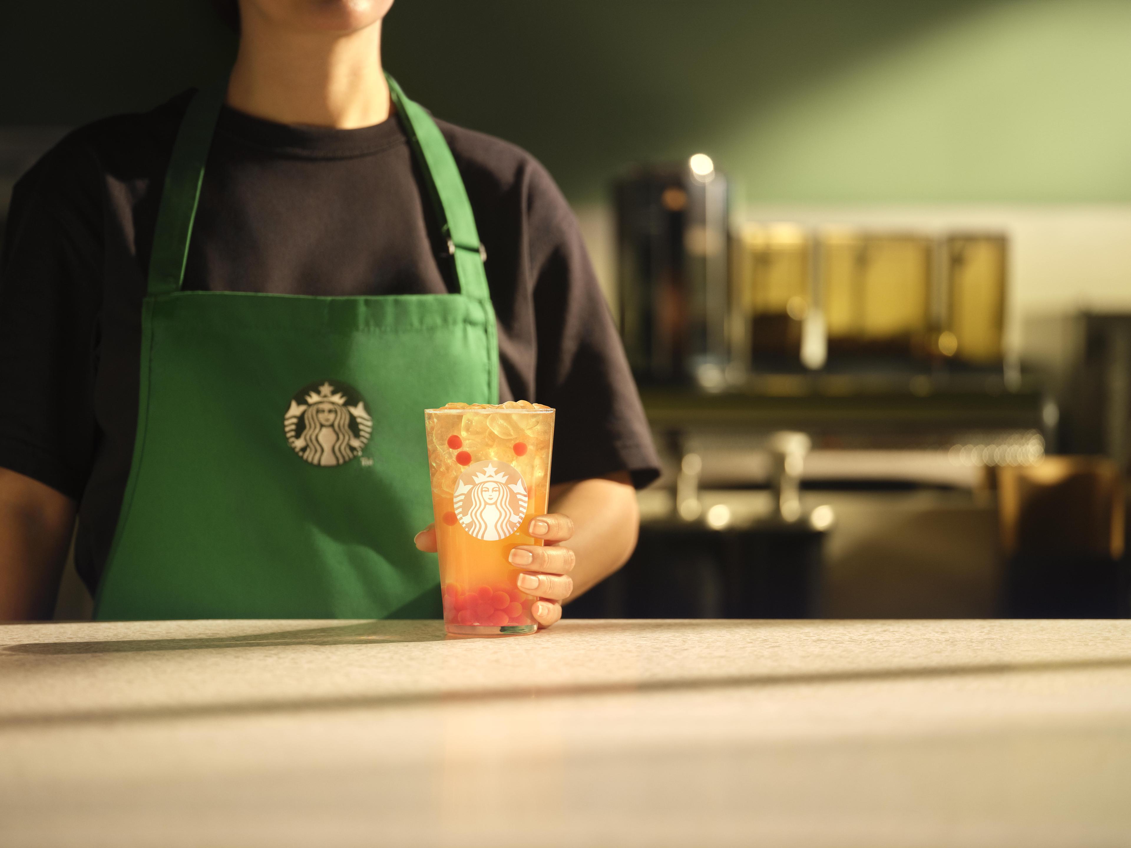 The original Starbucks Refresha® drinks are still available but this Summer we are excited to launch the new concept Melon Pearl Refresha. This sweet melon flavoured Refresha® base poured over ice and combined with juicy pops of melon flavoured pearls that burst in your mouth – a hydrating hit for Summer!